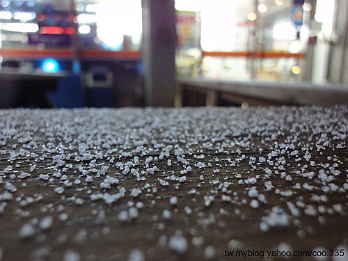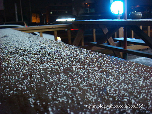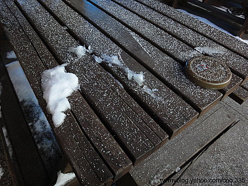 後來乾脆拍商店外的餐桌,留下現在在下雪的剎那。