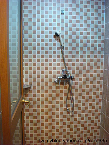 簡單的淋浴間,連掛衣服的掛勾都沒有,有點囧。