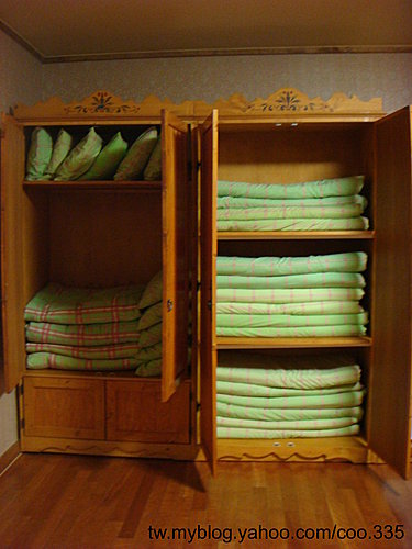 好幾人份的床墊和枕頭,いくみ舖了2.3層以彌補沒有軟軟大床的遺憾。