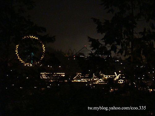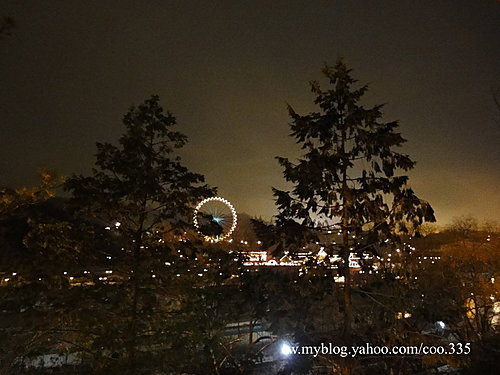 到陽台透透氣,愛寶樂園的四季花園依然亮著。